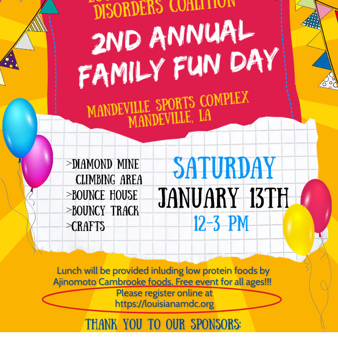Support, education, and advocacy for Louisiana residents with rare metabolic disorders